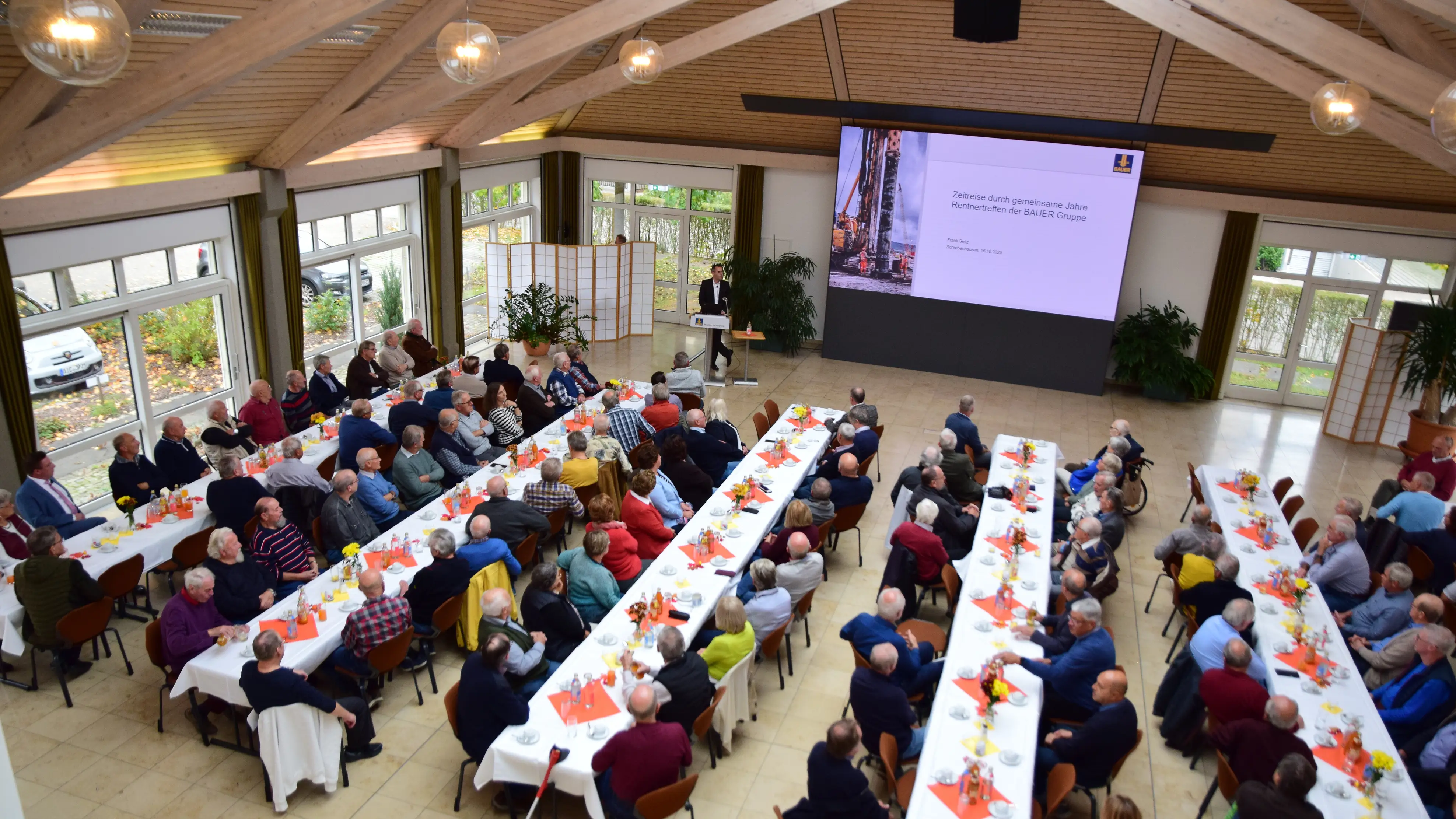 Schrobenhausen – Am 16. Oktober fand im Konferenzgebäude der BAUER AG erneut das traditionelle Rentnertreffen statt. Zahlreiche ehemalige Mitarbeiterinnen und Mitarbeiter kamen zusammen, um in vertrauter Runde Erinnerungen auszutauschen, Neuigkeiten aus dem Unternehmen zu erfahren und einen geselligen Nachmittag miteinander zu verbringen.