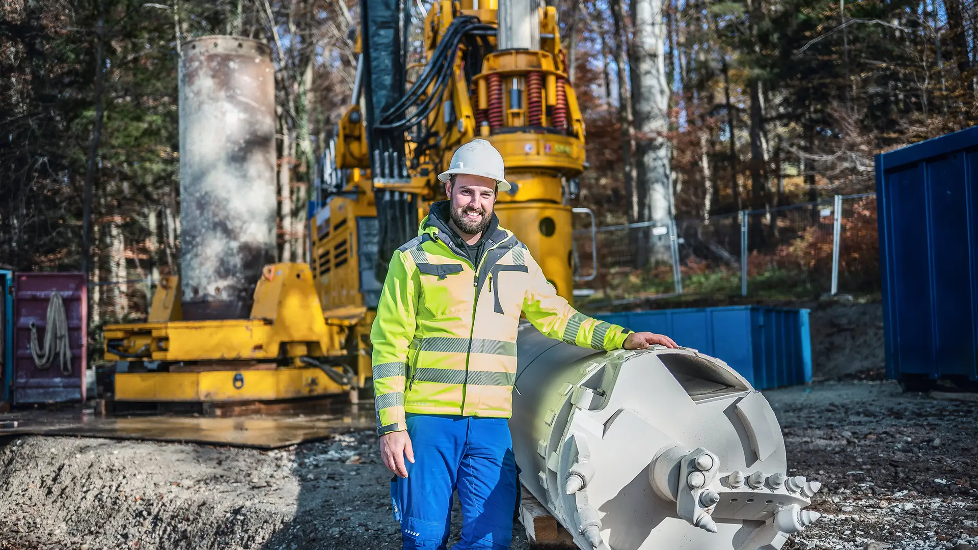 Lucas Tafelmeier, Managing Director at Tafelmeier Tiefbrunnen-Bau, relied on high-performance Bauer equipment and customized drilling tools from Bauer Parts & Service.